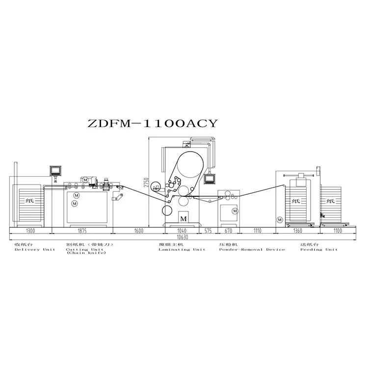 ZDFM-ACY Solution: Tinitiyak ng powder removing unit ng aming Automatic Chain Knife Powder-Removal Laminating Machine na ang coated surface ay kristal na malinaw at walang anumang depekto; tinitiyak ng chain knife unit na ang makapal na PET film o metal film na gilid ay pinutol na kasing pinong ng kutsilyo.